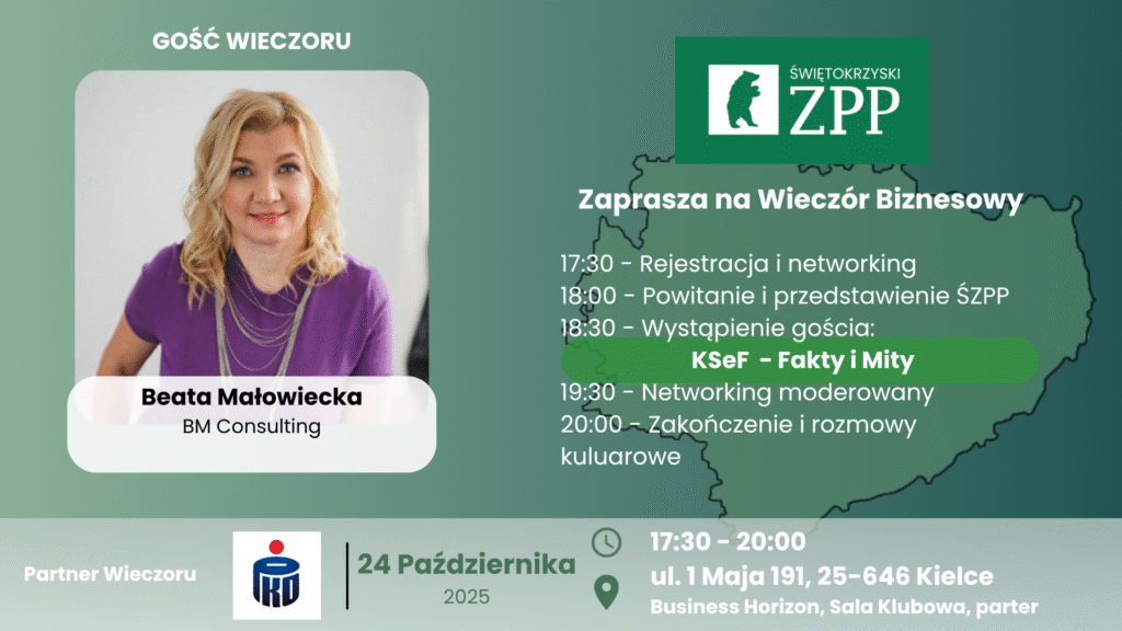 pt24paź17:30pt20:0017:30 - 20:00 Wieczór biznesowy 24/10/2025Kielce